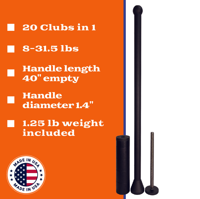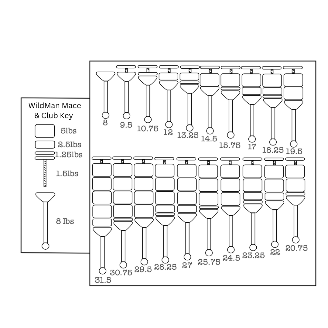 Kit Includes: 1 x WildMan Mace Handle, 4 x 5lb weights, 1 x 2.5lb weight, and 1 x 1.25lb Fractional.